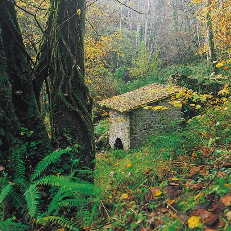 Partiendo de la aldea de Cueves y siguiendo la pista que nos conducirá hasta el caserío de Santiago, cruzaremos éste hacia el fondo, por donde discurre la riega de Tresmonte. Siguiendo el arroyo, nos adentraremos en un valle estrecho y frondoso, salpicado de antiguos molinos harineros, la mayoría de ellos en ruinas, excepto el último, llamado Molino de Francisco, que se sitúa justo debajo del camino, a la izquierda de la ruta. Poco después de este molino, el camino asciende para alcanzar la pista que, hacia la izquierda, nos conduce al caserío de Tresmonte.