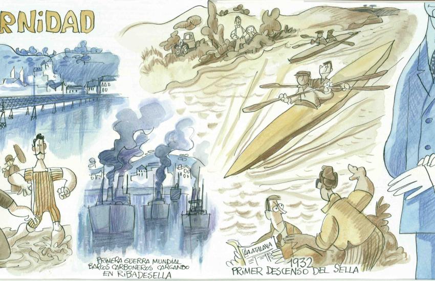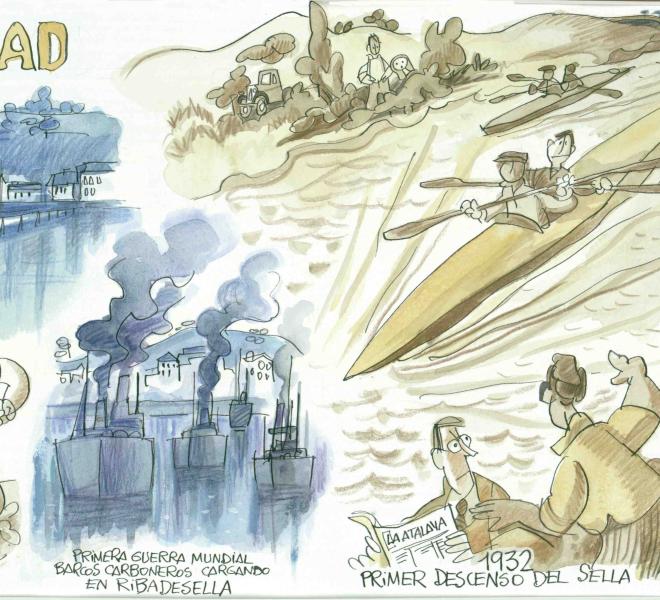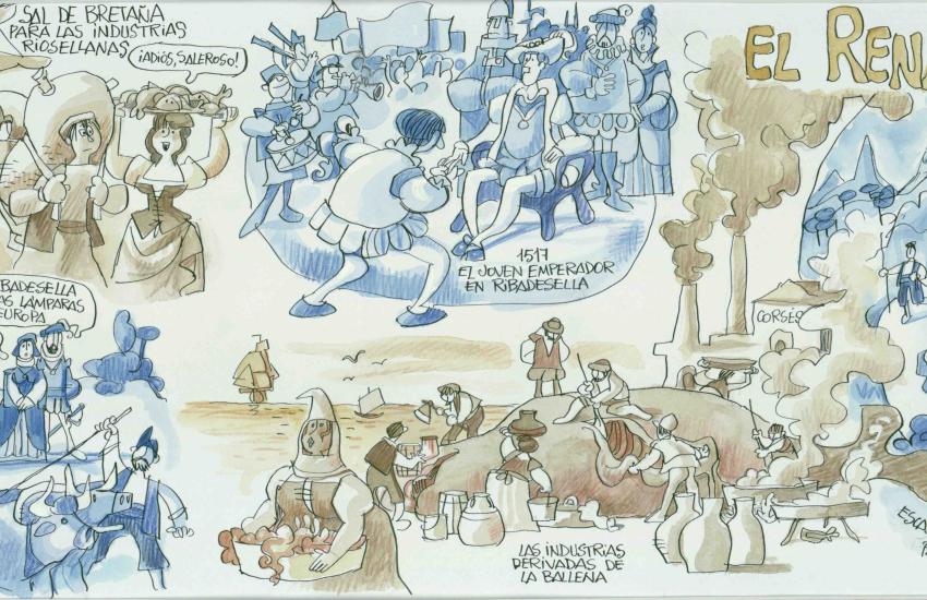 6 murales, con dibujos del gran humorista gráfico Antonio Mingote, que nos cuentan la Historia de Ribadesella.