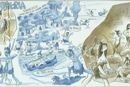 Son seis murales en tonos azules y sepias, cada uno dedicado a una determinada época, que nos desvelan los momentos más relevantes de la historia local riosellana desde las Prehistoria hasta la época moderna.