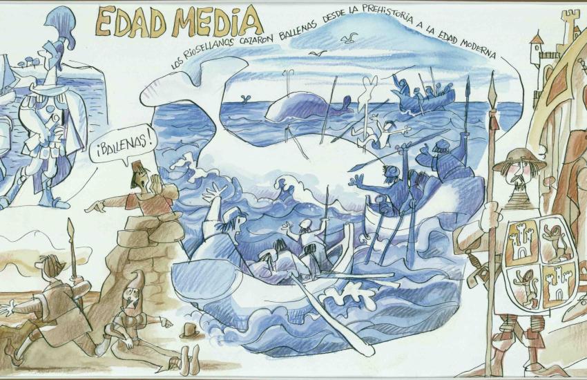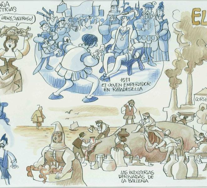 6 murales, con dibujos del gran humorista gráfico Antonio Mingote, que nos cuentan la Historia de Ribadesella.