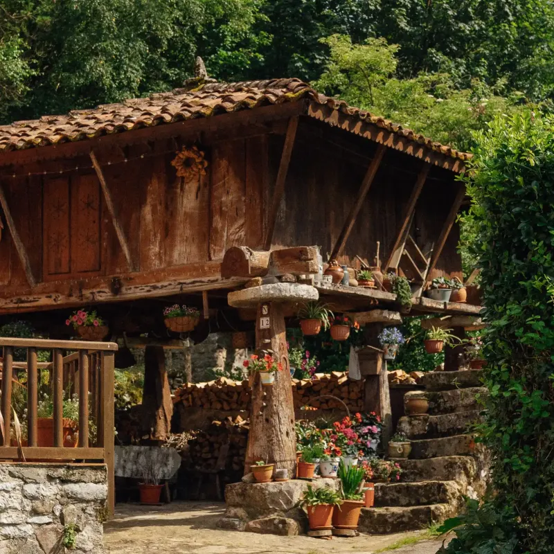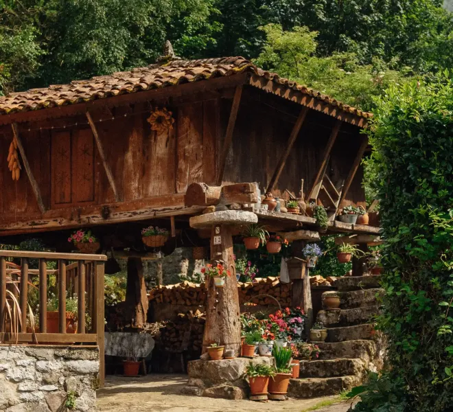 La ruta comienza en la aldea de Santianes, donde aparcaremos nuestro vehículo junto a la plaza central de la localidad, reconocible por una fuente ornamentada con una antigua muela de molino.